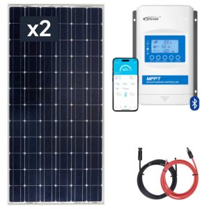 Zestaw do kampera panel sztywny 2x 150W, regulator ładowania 20A