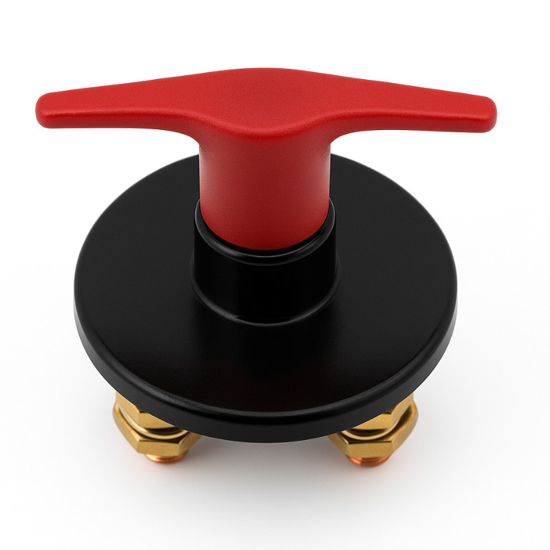 Wytrzymały rozłącznik główny do instalacji 12/24 V DC, przystosowany do pracy ciągłej z prądem do 300 A. Zapewnia szybkie i bezpieczne odcięcie zasilania w pojazdach, łodziach, kamperach oraz systemach off-grid, podnosząc poziom bezpieczeństwa całej instalacji. Niewielkie wymiary ułatwiają montaż w szafach zasilających, a wytrzymała obudowa zapewnia odporność na warunki zewnętrzne i długą żywotność w codziennym użytkowaniu. Przystosowany do niskonapięciowych systemów zasilania w motoryzacji, zastosowaniach morskich oraz autonomicznych układach fotowoltaicznych, gdzie wymagana jest niezawodna separacja akumulatora. Może pełnić rolę głównego wyłącznika serwisowego lub elementu bezpieczeństwa w skrzynkach i szafach zasilających (np. Szafa FF01-6615-12BL V2 z termostatem), instalacjach PV off-grid, kamperach, łodziach oraz innych systemach, w których wymagane jest szybkie i pewne odłączenie akumulatora.