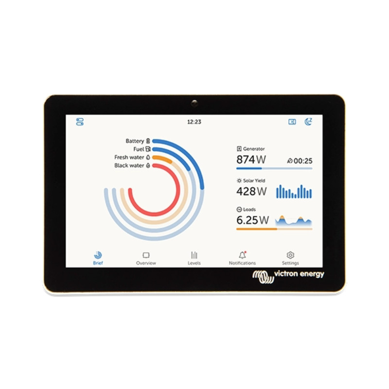 • GX Touch 50 – Dotykowy wyświetlacz do Cerbo GX, umożliwiający wygodną obsługę i monitorowanie systemu energetycznego.